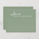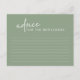 Sage Minimalist Script Möhippa Advice Card är ett tillägg till en modern möhippa i perfekten. Med en enkel och elegant utformning med moderna skriptbokstäver är det här rådgivningskortet både snyggt och funktionellt. Dina gäster kommer att dela med sig av sitt goda önskemål och råd till den blivande bruden på detta vackra kort för färgad.