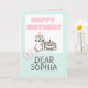 Det är ett jakande katt&keringskort för Grattis på födelsedagen. En katt i en hatt och en tårta är så söt. Mjuka blått och rosa i himlar är harmoniserade. Det var designat som om ett sött barn hade dragit det för hand. Det är en meningsfull gåva till din älskade. Köp din idag! Ha bra.