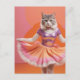 AI genererade konst av ett vackert dansande kattunge i en rosa- och orange klänning