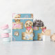 Dessa goda valpar vill önska era vänner och familj ett God jul! En baby blue bakgrund med ätliga valpar med skyltar som säger "God jul" och lite tass avtryck. Kakor, polkagrisar och hund som är spridda över hela kroppen.