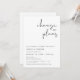 Denna bröllopsinbjudan för byte av planer har en kantig handskriven stil och modern minimalistisk design. Redigera *de flesta formuleringar*. Alla färger kan redigeras för att passa dina behov. Lägg enkelt till ditt eget foto på baksidan för en unik personlig touch.