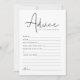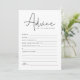 Detta nya råd och önskemål-kort har ett edgy handskrivet teckensnitt och en modern minimalistisk utformning med en edgy svartvitt i färg. Den här minimalistiska utformningen är perfekt för din moderna eller klassiska möhippa, par-dusch eller bröllop-händelse. Redigera enkelt all färg för att uppfylla behoven för evenemanget.