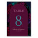 Eleganta smyckesinade färger vinröda blommor vigsel bord nummer. Lägg till en touch av sofistikering på dina vigselbord med detta eleganta och stilrena blommiga bordnummer-skylt i smyckesinade färger. Med en fantastisk komposition av rika vinröda, marinblå, fuchsia, magenta, turkos och lila blommor, förstärker denna design enkelt din vigseldekoration. Perfekt för att guida gäster till sina platser med stil, kombinerar denna bordnummer-skylt modern elegans med en livfull blommig estetik, vilket gör den till ett vackert tillägg till din vigselreception.