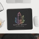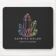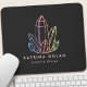 Ädelstenslogotyp för företag med regnbågs kvarts kristall musmatta. Denna eleganta moderna trendiga företagsdesign har en regnbågsfärgad kvarts kristallkluster på en solid svart bakgrund. Perfekt för en smyckedesigner, modebloggare, holistisk reikimästare eller till och med en boutique!
