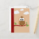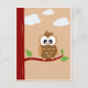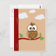 Ett vykort från ett sött uggla sitta på träd med moln i bakgrunden. Utformningen är färgstark och helt enkelt förtjusande.