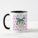 En rolig mugg för vuxna och barn med ADHD. Den har en söt illustration av en liten flicka med ett förtjusande leende och texten "ADHD SÖT". Hon är omgiven av rosa knappar eftersom hon är söt som en knapp. Denna mugg är designad för att fira/stödja personer med ADHD och öka medvetandet om de positiva och unika personlighetsdrag som kommer med det.