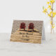 Adirondack-strandstolar har vikta kort för flytta. Rustic land brunburgundi, röd, modern, chic, trendig, unik. Personlig pension stil design. Ordet "Vi har flyttat till stugan". Anpassa din typografi efter teckensnitt storlekt, stil, färg eller ta bort om du vill. Upphovsrätt Marg Seregelyi Fotography.
