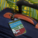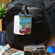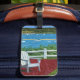 This vivid oil pastel painting features a white Adirondack chair on a red brick padiatio overlooking Cape Cod. Brilliant green, blue, red, and yellow create a stunning summer seascape on the New England Coast.