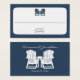 Adirondack-stolar har en silhuette-design i marinblått sittkort för att uppfylla vår inbjudan till bröllop på stranden.
