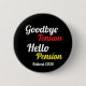 "Adjö, Hej pension, pensionerat år" Knapp - där pension möter roligt! Det återvita manuset typsnitt tillfogar den trendiga färden i pension utan vidare coola.