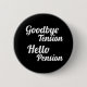 Släpp loss coolan med vår "Adjö, Hej Pension"-knapp - där pension möter roligt! Den retrovita typografin tillfogar den trendiga färden i pension utan problem coola. Matchande gåvor finns i vår samling. Modern svart och vit design.
