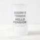 Adjö till spänningen i hej lycklig pension roligt frostat ölglas