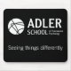 Adler skolar mousepad med den svartvita logotypen och "sesaker olikt",