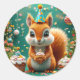 Laddande ekorre med festive party-hatt, omgiven av vibranta dekorationer och färgstarka muffinsar i en lekfull, glad miljö.