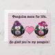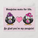 Två vidgande penguiner med rosa hjärta och ljus rosa rand. Jag ritade en lila hatt med blomma till den lämnat, och en shock rosa med band till den på högerna. Byt ut exempeltexten mot din egen ord för en unik gåva. Gör en underbar gåva till ett par lesbiskar, en könsneutral eller homosexuell ceremoni i bröllop, frieri, förlovning, årsdag samt födelse eller adoption i baby.