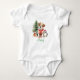 Den här söta karosserin har en liten valp hund klädd i en röd tomtsvett sitta bredvid en Julgran. En baby penguin är sitta bredvid honom. Du anpassar det med ditt barns namn under dem i ett skript för söt grönt.