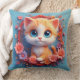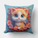 Admatta Tecknad Katt omgiven av färglöst blomma Kudde