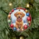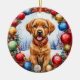 En söt valp sitter i en dekorativ andekrans omgiven av helgdag och fångar julandan. Den här scenen ställs mot ett snöslandskap, vilket förbättrar dess värme och charm.