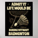Admit It Life Would Be Boring Without Badminton Pl Poster