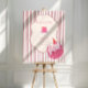 Adopt a Cat Pink Cake on Stripes Birthday Decor Poster