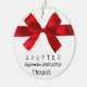Adoptiv- rött band - anpassningsbarnamn, daterar, julgransprydnad keramik