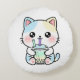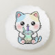 Adorable Cat with Drink – Throw Pillow Rund Kudde