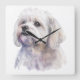 ADORABLE LITTLE WHITE MALTESE PUPPY HUND FYRKANTIG KLOCKA
