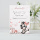 Cute girl diaper raffle enclosure card featuring adorable little female zebra wearing a cute pink bow with some love hearts sitting on clouds