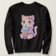 Adorable Pastel Tabby Cat Drinking Boba Art Kawaii Lång Ärmad Tröja