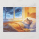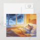 Adorable Sleeping Cat Winter Snow Outside Vykort
