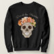 Fira Day of the dead med den där bländande bilden av en skalle (kalavara) med en blomkrans på en tröja. "Dia de los Muertos".