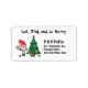 Julpickleball-adressetikett med jultomten som spelar pickleball på vit bakgrund. Ät, rosa och var glad