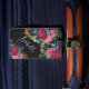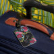 Den svart bagagemärkresöten blommar i rosor, blått och burgundy. Tillfoga ditt namn i ett älskvärt skrivar. Och på baksidaen, ditt namn och adress.