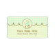 En adressetikett med bakgrunden till grönt gingham överst. Grönt baby bär inuti den blå cirkeln vid översta mittpunkten. Anpassa den bruna texten.