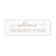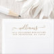 Chic, modern och enkel namn-returadressetikett för familjen med ditt efternamn i handskrivet skript för guld elegant på en vit bakgrund. Lägg bara till ditt namn och adress. Enbart designad för dig av Lycklig Dolphin Studio. Om du behöver hjälp eller matchande produkter kontaktar du oss genom vår chatta.