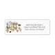Returetiketter med en scen, t.ex. en hjullåda, en skiva och krukväxter med trästängslet. Matchande flytta-meddelanden som finns i vår butik.