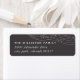 En enkel och modern returadressetikett som innehåller ditt namn och adress i vita bokstäver på en rik med jordad tonad bakgrund, accentuerad med flytande linjer överst. Designad att samordna med vår Winter Tidings-helgdag-samling.