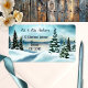 En adressetikett för elegant med en vattenfärgad målning av en vinterlandscen. Vackert för ett vinterbröllop eller annat vinterutskick.