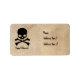 Rektangulära adressetiketter med antika fallbakgrund och skalle och korsben, svart silhuett.