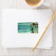 adressetiketter med teal ombre-bröllop med ljus hängande på handflatan träd.