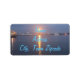 En adressetiketter med ett foto av en soluppgång i Mississippi River i Baton Rouge i La.