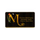 Adressetiketter med tulpaner och fjäril monogram M. Mörkbrun läderlook bakgrund.