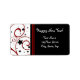 Gott nytt år-adressetiketter i klassiskt rött, svart och vitt med elegant-snurrar och stjärnor mönster, perfekten som tillägg till nyårskort och kuvert.