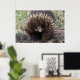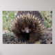 Vackert souvenir-foto av en adativ inhemsk vild australisk echidna, liknande porcupin eller anteater. Fotografiet visar sin brunryggrad och mycket söt ansikte med beady öga och lång nos.