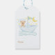 Sötpresentens märkre är utformad på ett bra sätt och den vackra bruna björnen inuti en blå papper båt med ljusblå bakgrund med en halv måne och många stjärnor. Anpassa den och använda dem till nästa babydusch, baby första födelsedagsfesten, barns födelsedag och mer! Art av Sanqunetti Design.
