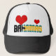 Den hedervärda Bahamas-Flagga hedrar den patriotiska Truckerkepsen med texten "Bahamas" på hattens framsida. Inskriptionen ges till mönster och färg från Bahamas nationella flagga. Två röda hjärtan, en stor och en liten avslutar utformningen. Hjärtarna är fullt anpassade eller kan tas bort med funktionen "Anpassa det!". Bashatt färg kompletterar utformningen mycket väl. Den här fina hatten är en underbar och unik gåva. © LänderAvVärlden