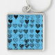 Adsible Black Heart Scribble Teckning Keychain Fyrkantig Silverfärgad Nyckelring