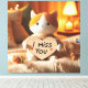 En charmerande orange och vit kattborst med en hjärtformad träskylt som säger "Jag saknar dig". På en mysigt säng med en stickad filt, en ro och varm belysning utstrålar den komfort och sentimentalitet, perfekt som en tankfull gåva eller dekoration. (: