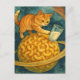 En söt ingefära kattunge driver ett glas mjölk från en planet som är gjord av ostnudlar och mättnad som ringar fantasykonst