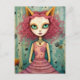 Adsible Dam with Cat Öron Mixed Media Collage Vykort